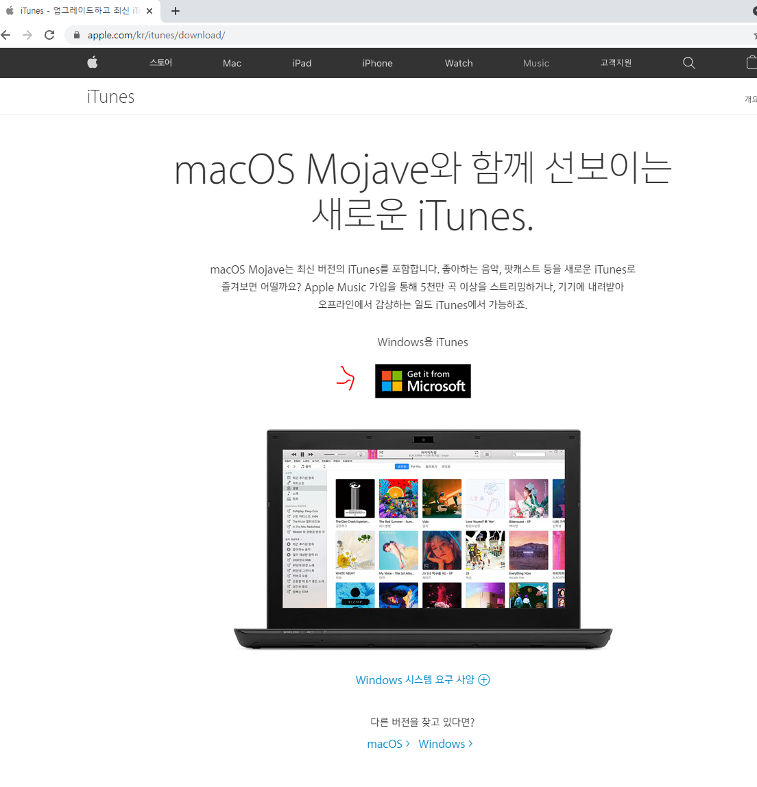 1. 아이튠즈 홈페이지에 들어가 다운로드한다.