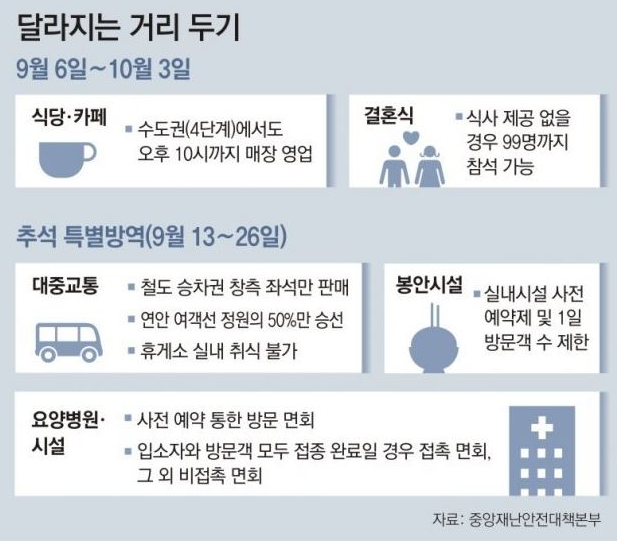Q. 수도권 4단계 지역도 추석 거리두기 기간에 백신 접종자 포함한 8인까지 모일 수 있는데 식당, 성묘 등 가능한가요?